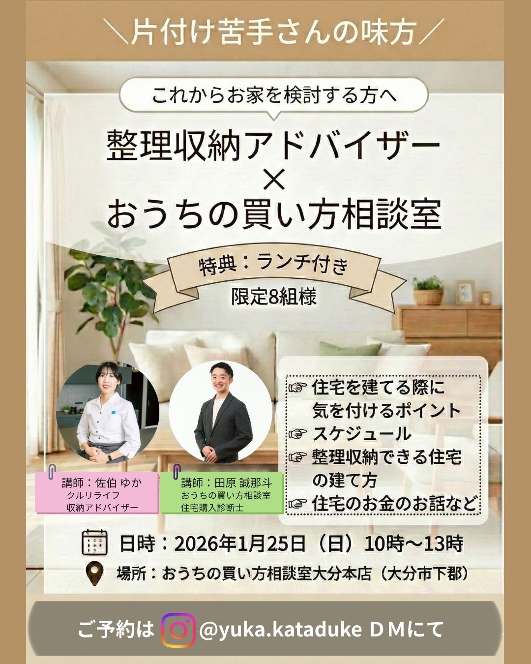 みなさんこんにちは佐伯です🥰 中津のラシックホーム様にて、https://www.lassic-home.com/建売住宅でルームツアーをしながら『片付く収納説明ツアー』を行います!🥰日時:2/7(土)10時の部、13時半の部場所:ラシックホーム沖代 そもそも... -